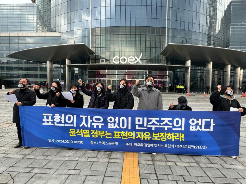 대한민국 헌법 21조는 “모든 국민은 언론출판의 자유와 집회결사의 자유를 가진다”고 규정한다. 그러나 한국에서 표현의 자유는 심각한 위험에 처해 있다. 오늘 우리는 서울에서 개막하는 ‘제3차 민주주의 정상회의’에 즈음하여 한국 민주주의가 직면한 위기의 실상을 국제사회에 알리고, 윤석열 정부가 표현의 자유 탄압을 중단할 것을 엄중히 요청한다.