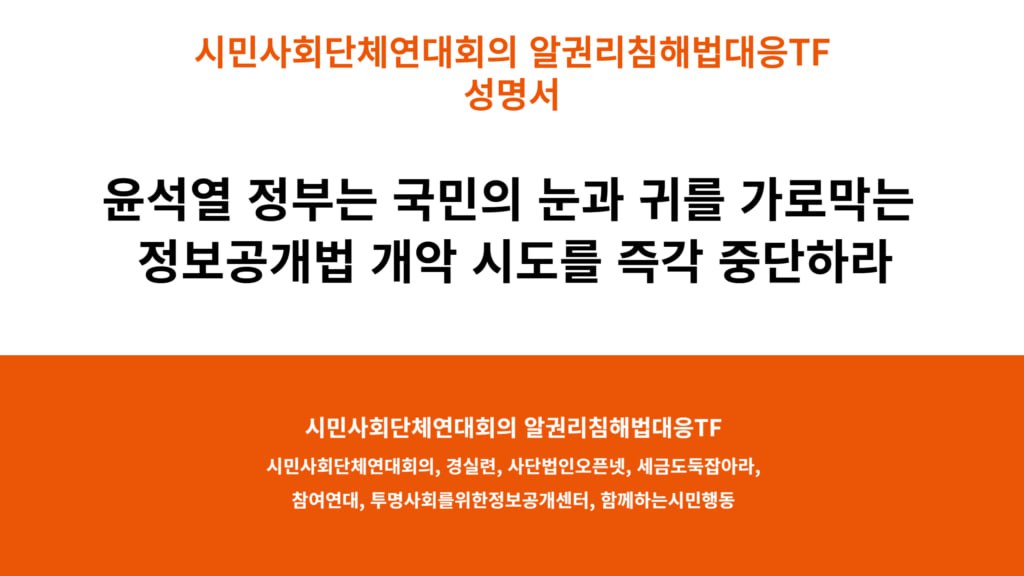 윤석열 정부는 국민의 눈과 귀를 가로막는 정보공개법 개악 시도를 즉각 중단하라