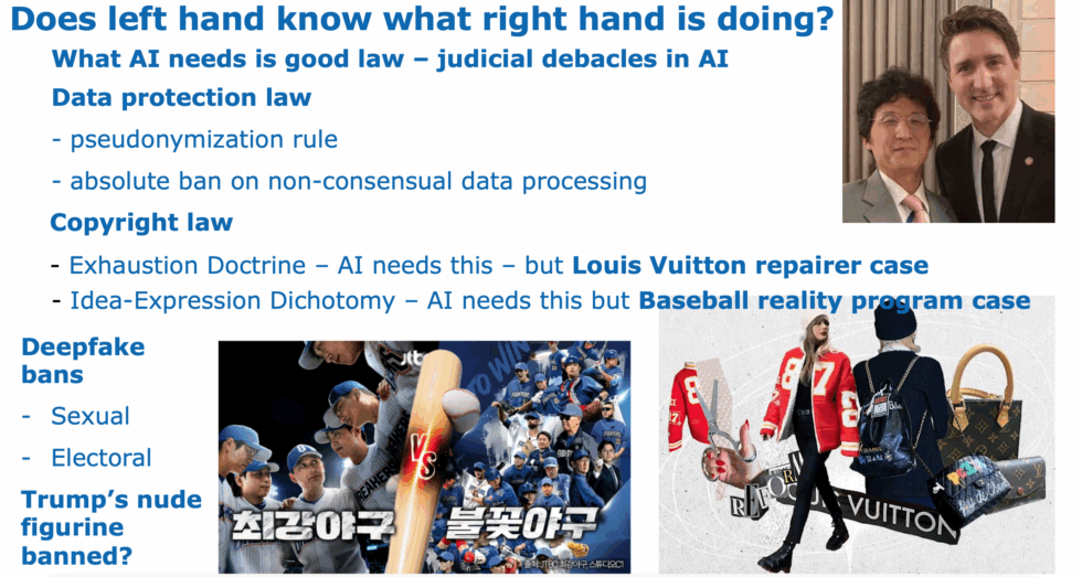 이러한 법적 환경은 한국이 세계 AI 경쟁에서 빅3가 되겠다는 목표에 부정적일 수 있다.