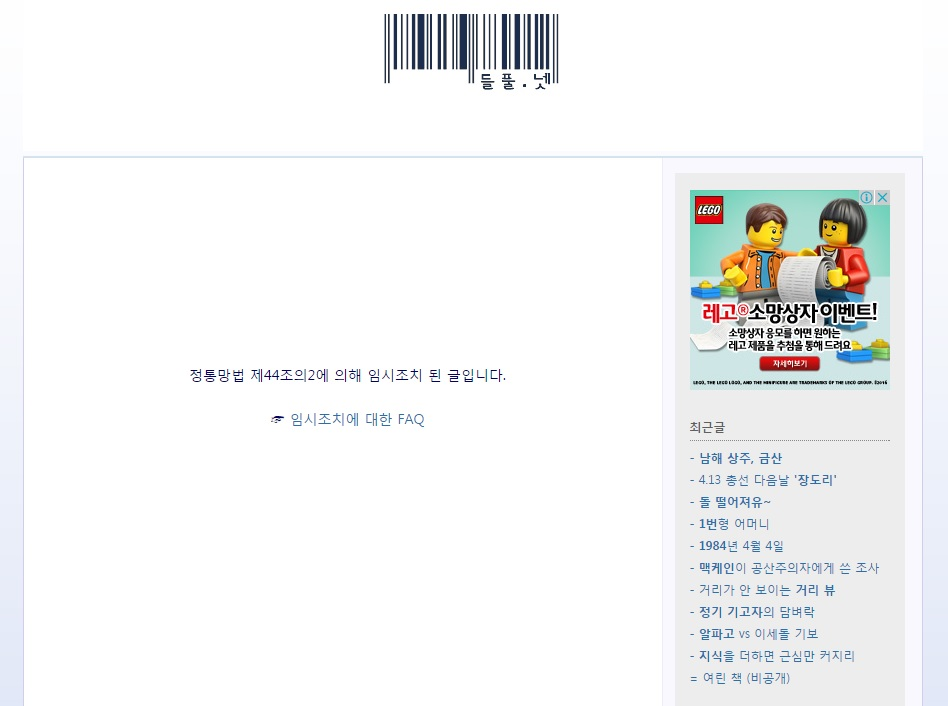 오픈넷은 2016년 <부당한 임시조치 고발 캠페인>을 전개해 공익적 가치가 큼에도 임시조치된 게시물들을 별도의 웹사이트 “임시조치 벙커(http://censored.kr)”에 게시했으며, 이를 오픈넷 홈페이지에 재게시합니다.