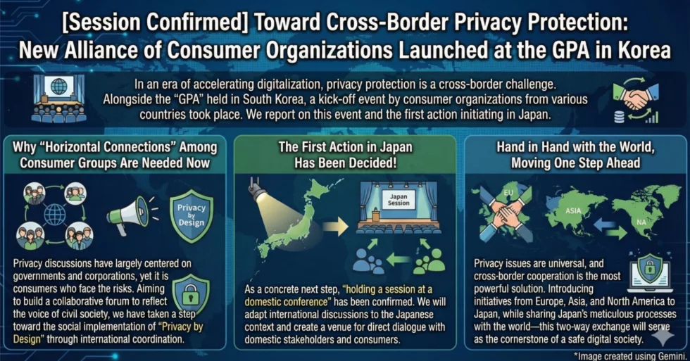 카토 에이미(Amy Kato, 일본소비자연맹) 는 일본의 디지털 소비자 프라이버시 현안과 더 높은 보호 기준을 확립하기 위한 역내 협력의 필요성을 논의한다. 특히 일본 소비자들이 사용하는 가정용 AI 로봇과 관련된 국경 간 데이터 문제를 중심으로, 일본 법제의 한계와 국제 협력의 중요성을 강조한다.